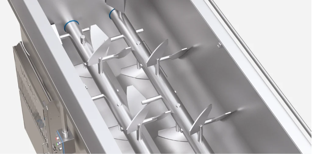 Impastatrici robuste a scarico frontale o ribaltabile: miscelano con efficacia salsicce, salumi e mortadella, migliorando resa, pulizia operativa e continuità produttiva.